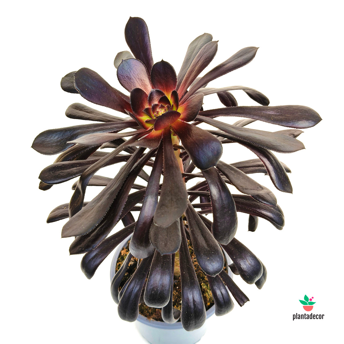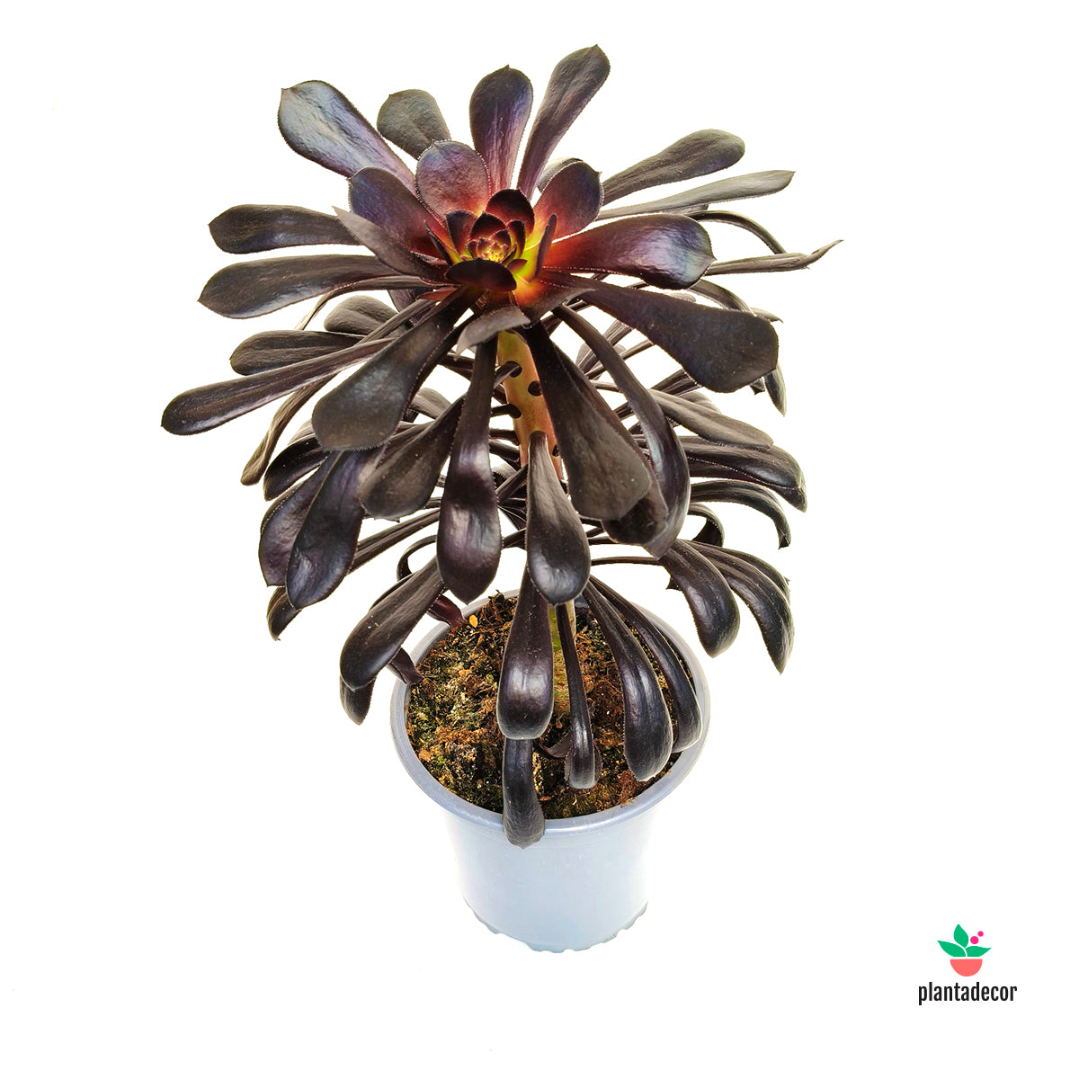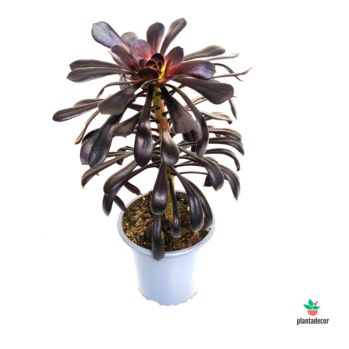 El Aeonium arboreum ‘Zwartkop’ es una suculenta muy espectacular y reconocible, apreciada por sus grandes rosetas de color púrpura muy oscuro, casi negro, que crean un contraste intenso y elegante. Su porte ramificado y su aspecto escultórico la convierten en una planta protagonista tanto en macetas como en jardines.