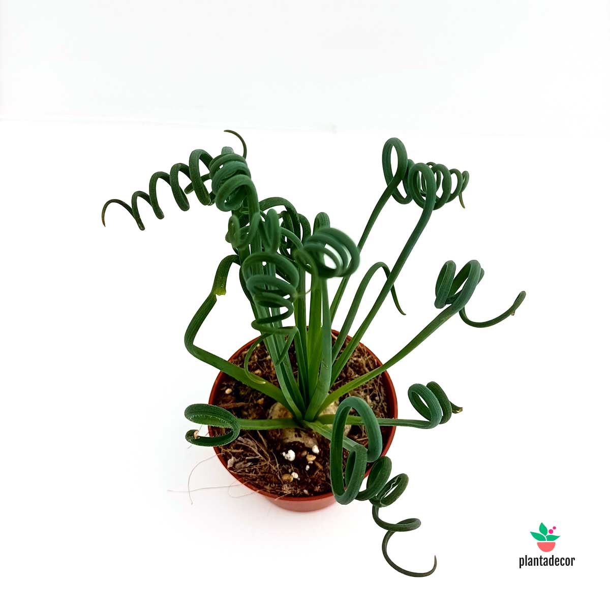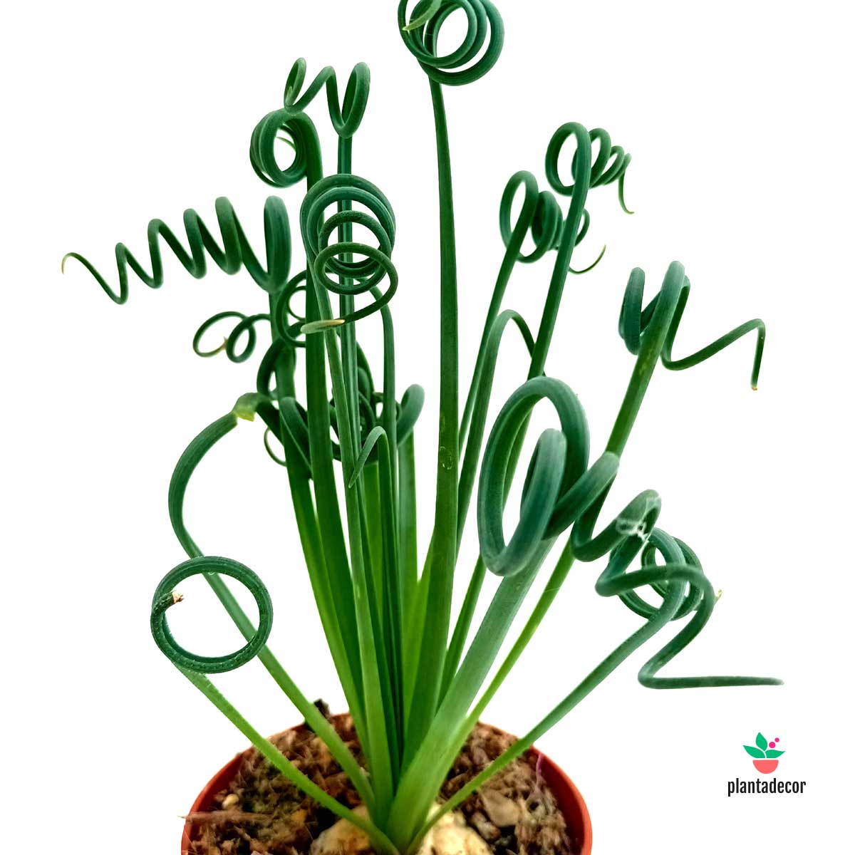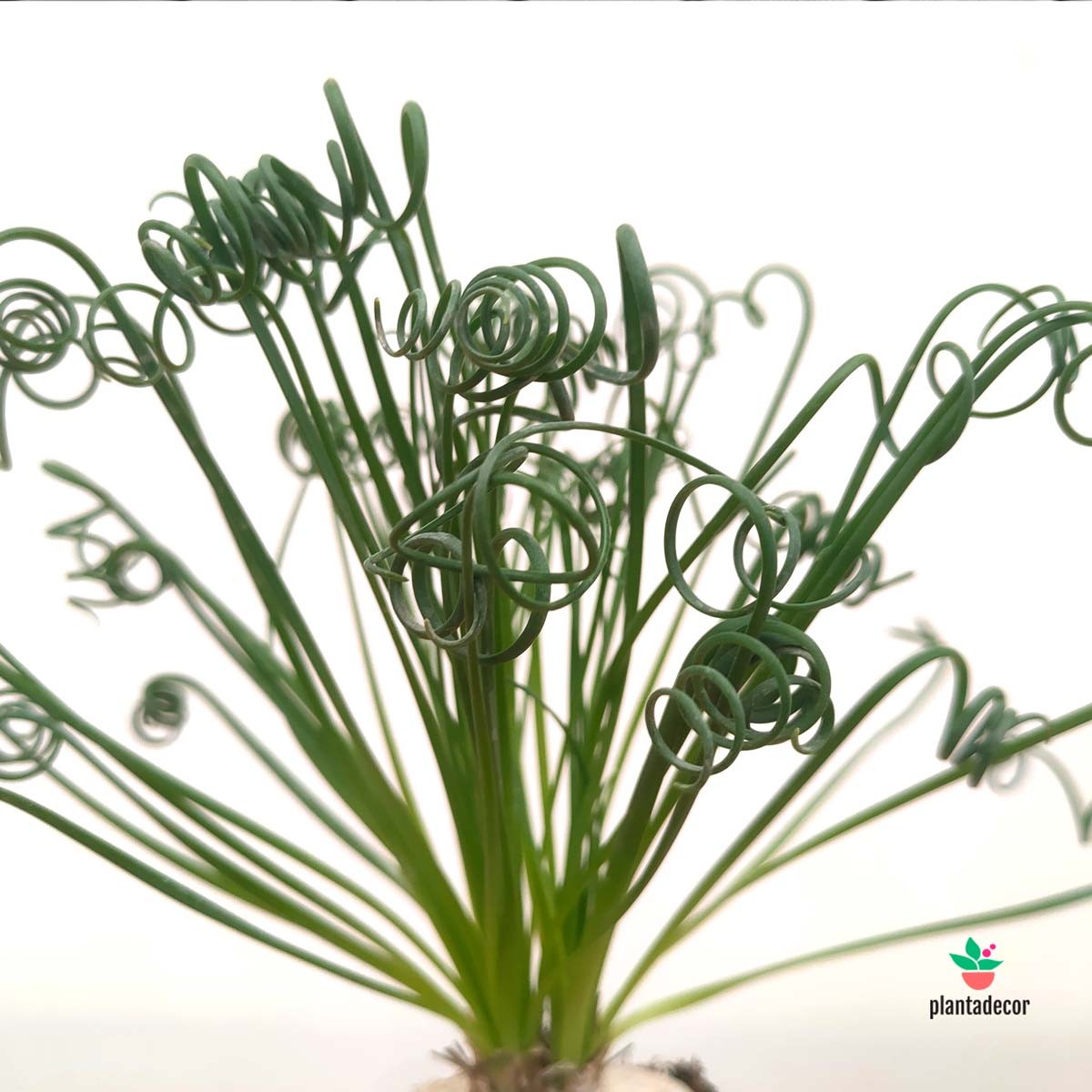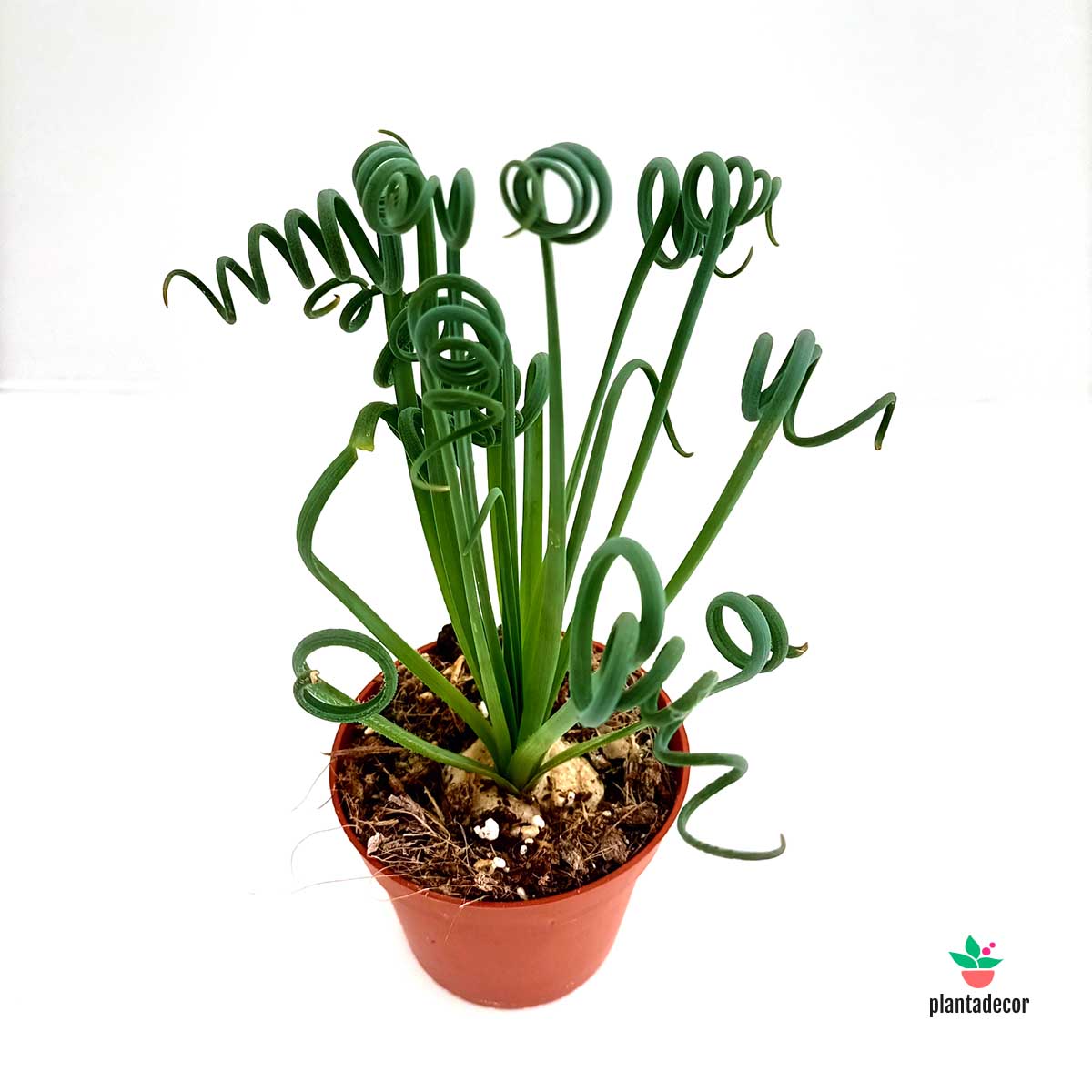 La Albuca spiralis ‘Frizzle Sizzle’ es una planta bulbosa única y llamativa, conocida por sus hojas verdes rizadas en espiral, que parecen pequeños tirabuzones naturales. Su aspecto divertido y escultórico la convierte en una planta muy apreciada por coleccionistas y amantes de lo original.