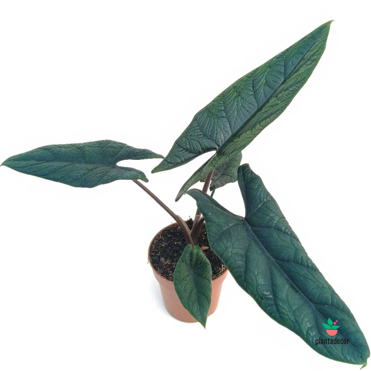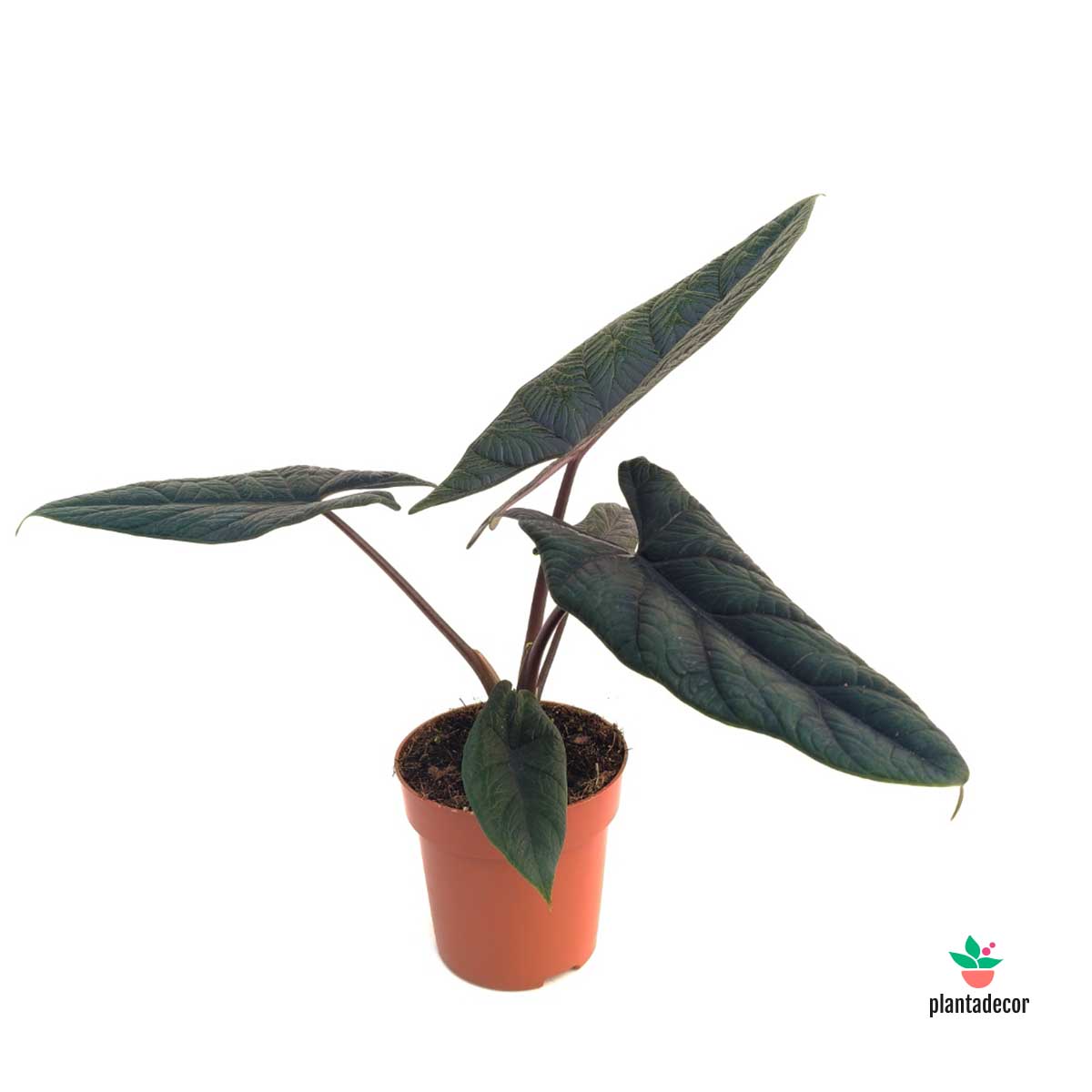 De porte compacto y crecimiento moderado, es perfecta para quienes aman las Alocasias de follaje escultural. Su belleza radica en la textura marcada de sus hojas y su porte vertical.
