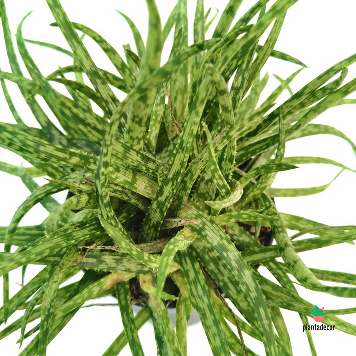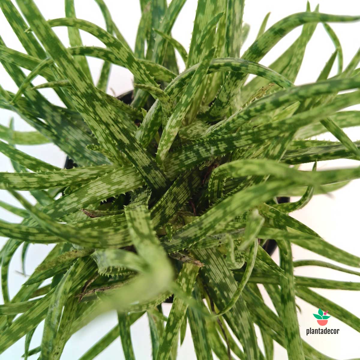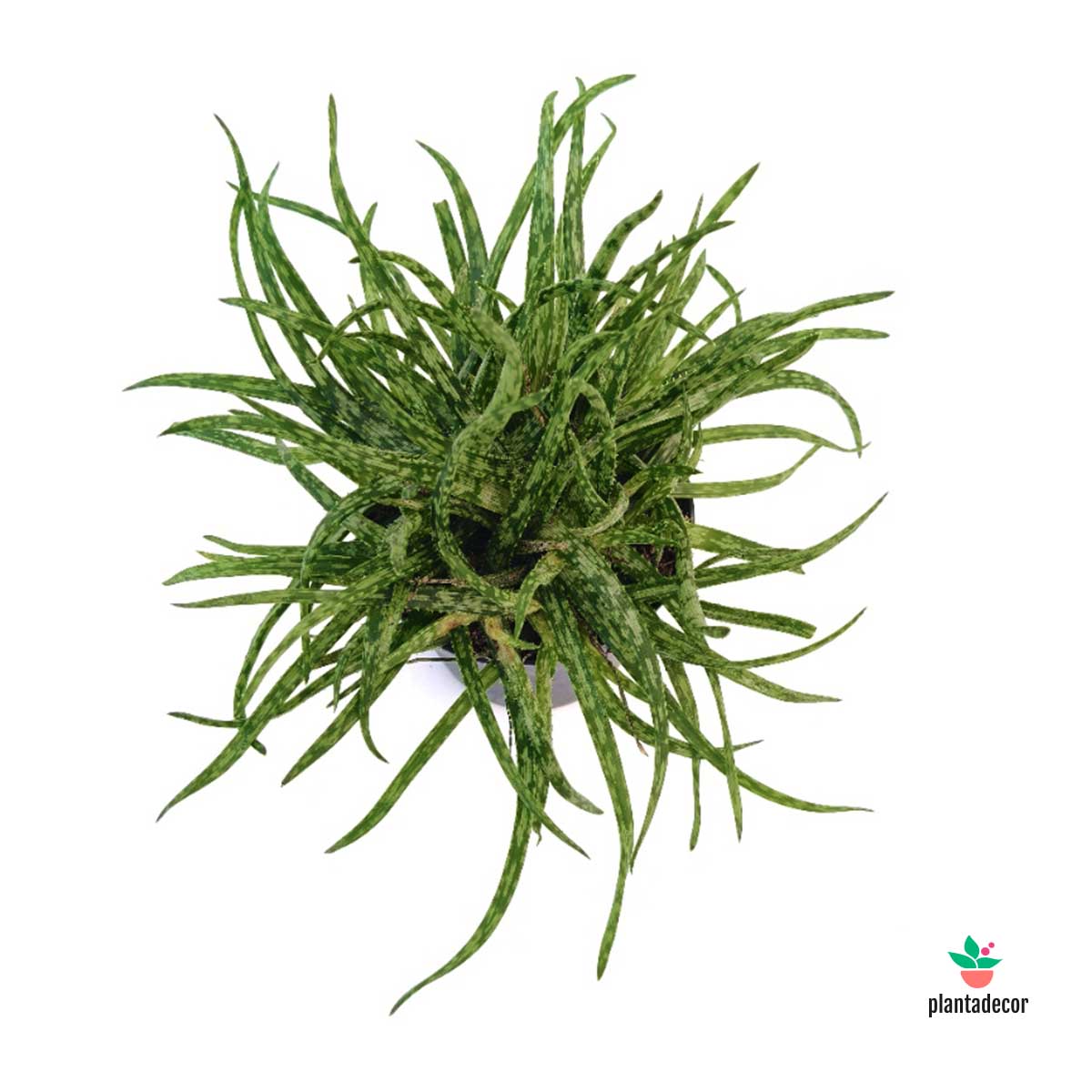El Aloe ‘Spider’ recibe su nombre por sus hojas largas, estrechas y ligeramente curvadas, que recuerdan a las patas de una araña. Su forma desenfadada y su color verde vibrante aportan dinamismo y frescura a cualquier espacio, siendo perfecta para quienes buscan una suculenta diferente y con mucha personalidad.
