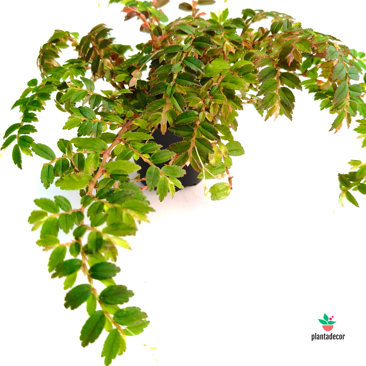 ✅ Hojas alargadas verde intenso con envés rojizo