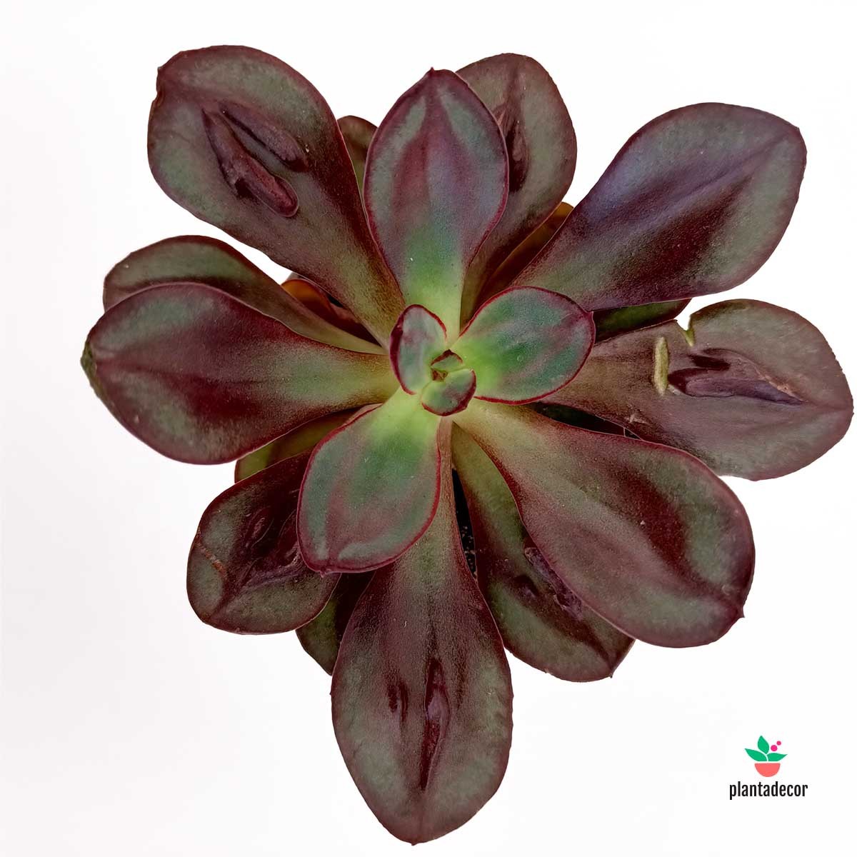 Su forma simétrica y su contraste de colores cambian según la luz y la estación, ofreciendo un espectáculo visual en cada época del año. Ideal para terrazas soleadas, jardines de rocalla o interiores muy luminosos.