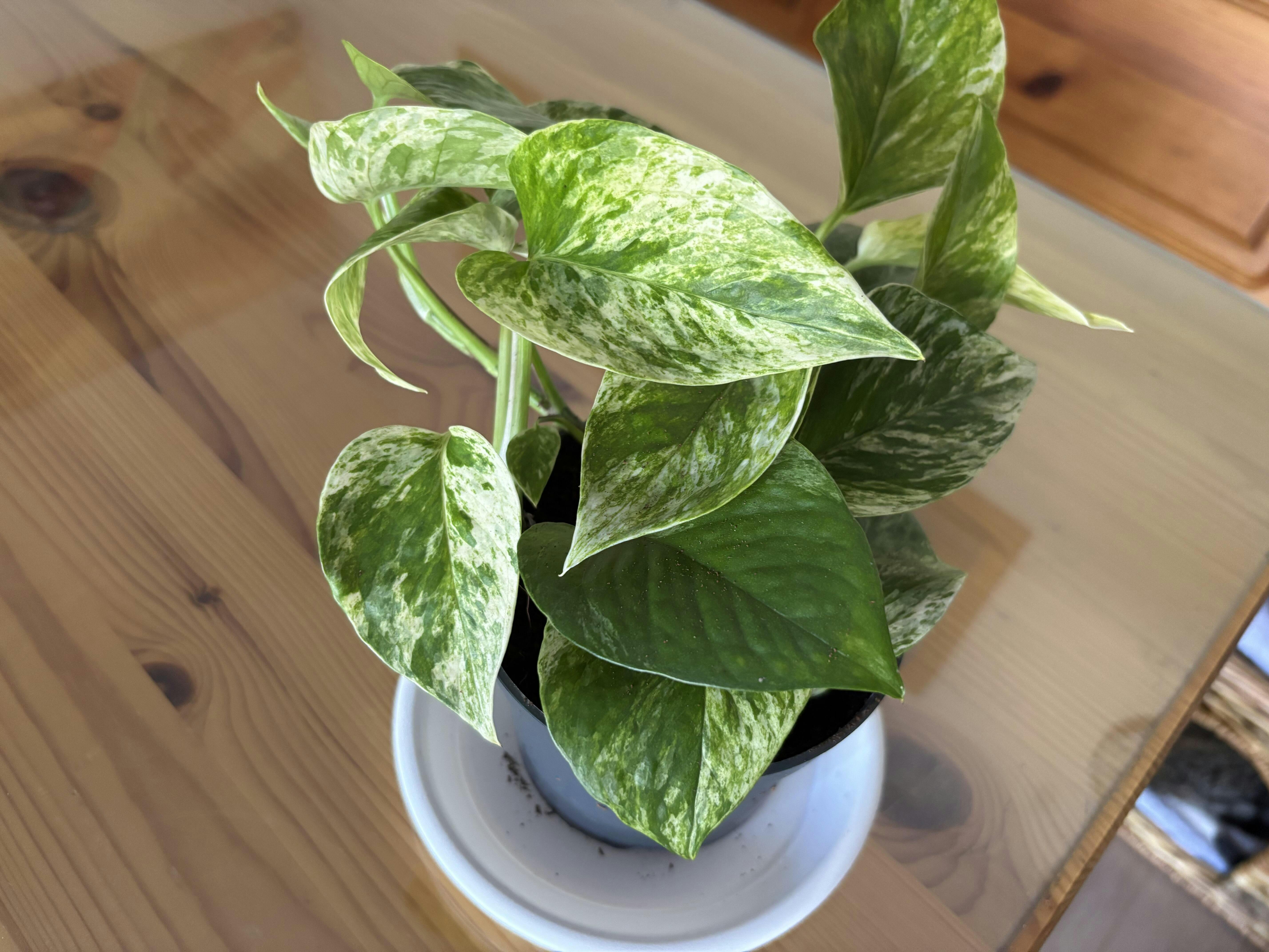 El Epipremnum pinnatum 'Marble Queen' es un pothos variegado espectacular, conocido por sus hojas corazón moteadas en blanco cremoso y verde suave que crean un efecto mármol maravilloso. Cada hoja es una obra de arte natural, aportando luz, frescura y armonía a cualquier espacio.