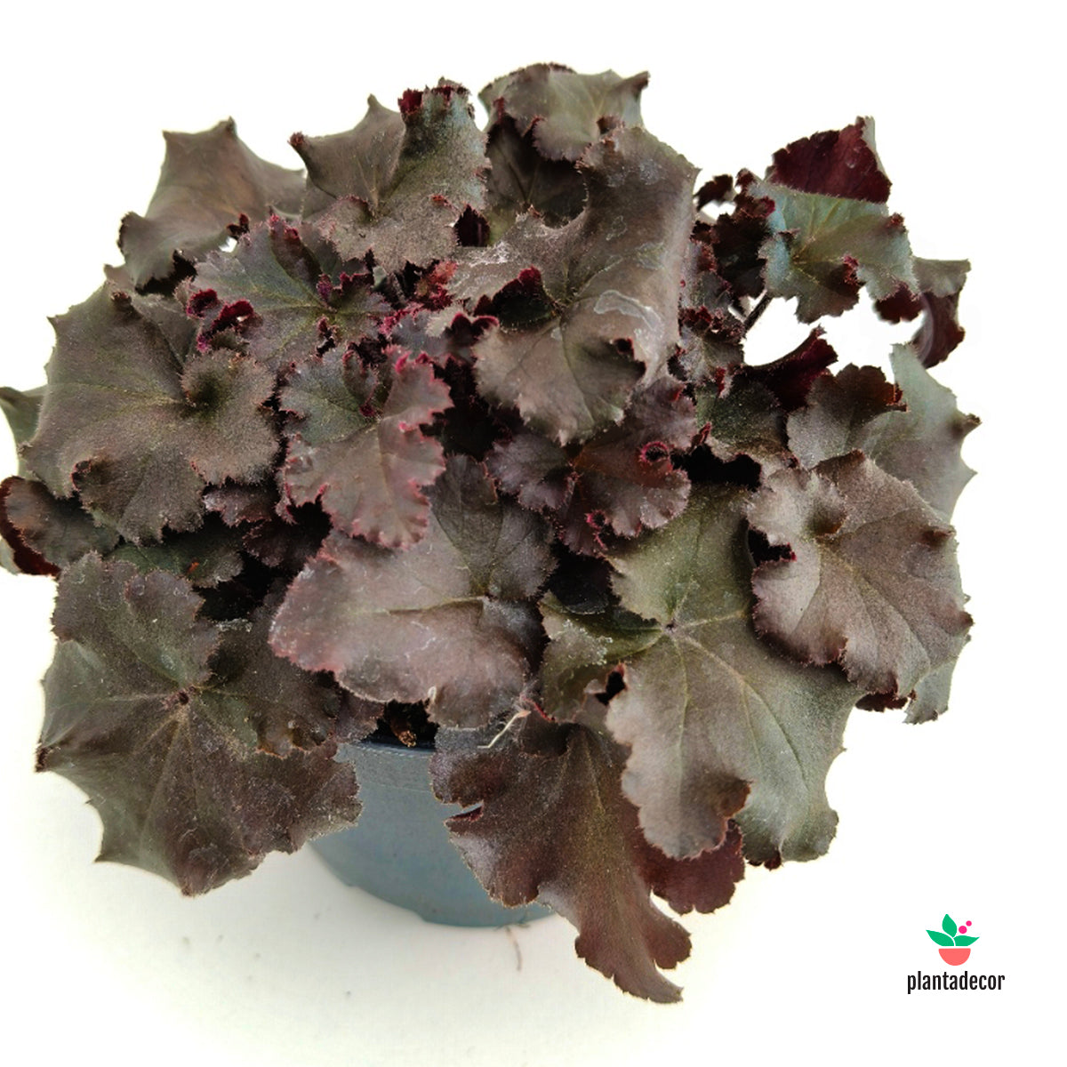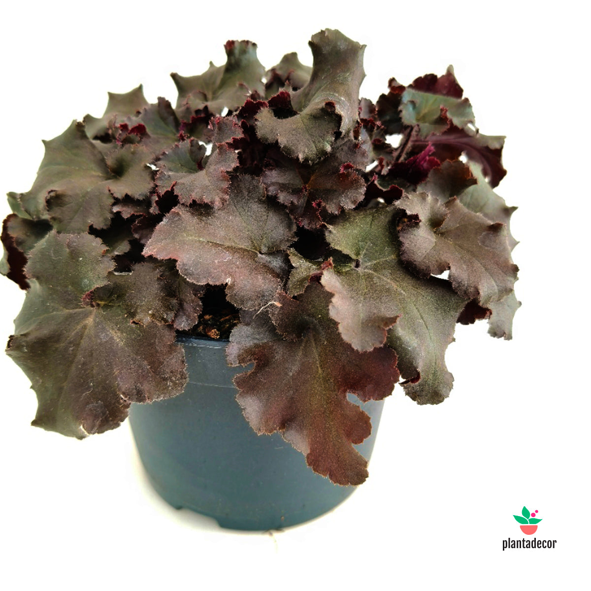 La Heuchera ‘Melting Fire’ es una planta perenne muy decorativa, conocida por su follaje rizado y brillante que evoluciona desde tonos rojos intensos y púrpuras hasta matices más oscuros a lo largo de la temporada. Su textura ondulada y su color profundo aportan contraste y dinamismo tanto en jardines como en macetas.