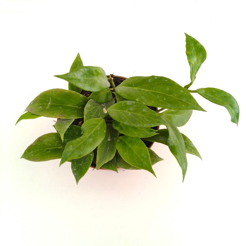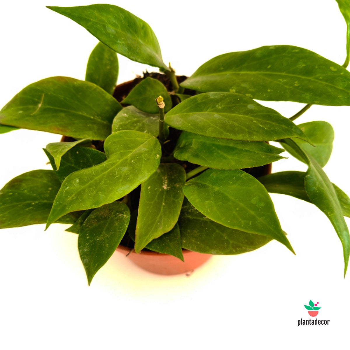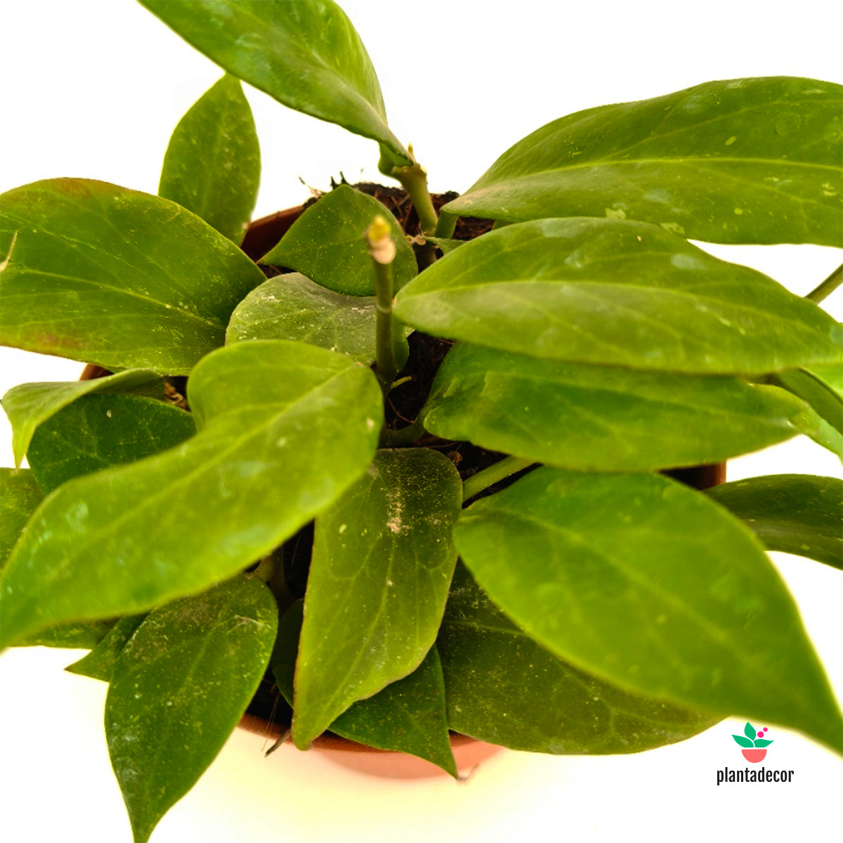 La Hoya cv. ‘Sunrise’ es un híbrido muy buscado, resultado del cruce entre Hoya lacunosa y Hoya obscura. Se distingue por sus hojas alargadas de verde intenso con nervaduras marcadas, que bajo buena iluminación adquieren un espectacular tono rojo burdeos. Esta transición cromática la convierte en una de las hoyas más decorativas y dinámicas.