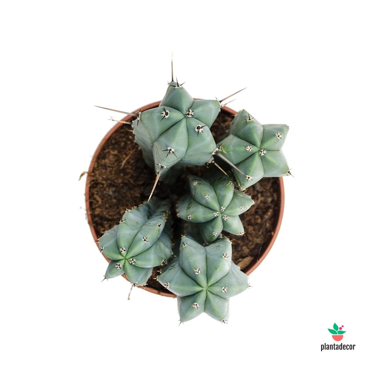 El Myrtillocactus geometrizans es un cactus escultórico y fascinante, reconocido por su tonalidad azul-verdosa única y sus costillas geométricas que crean una estética limpia y arquitectónica. Su porte elegante y vertical lo convierte en una pieza protagonista en cualquier colección de cactus o en espacios modernos que buscan un toque natural y minimalista.