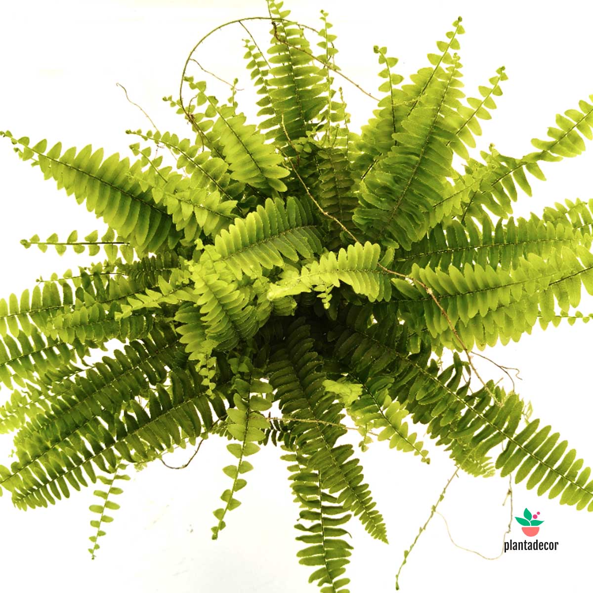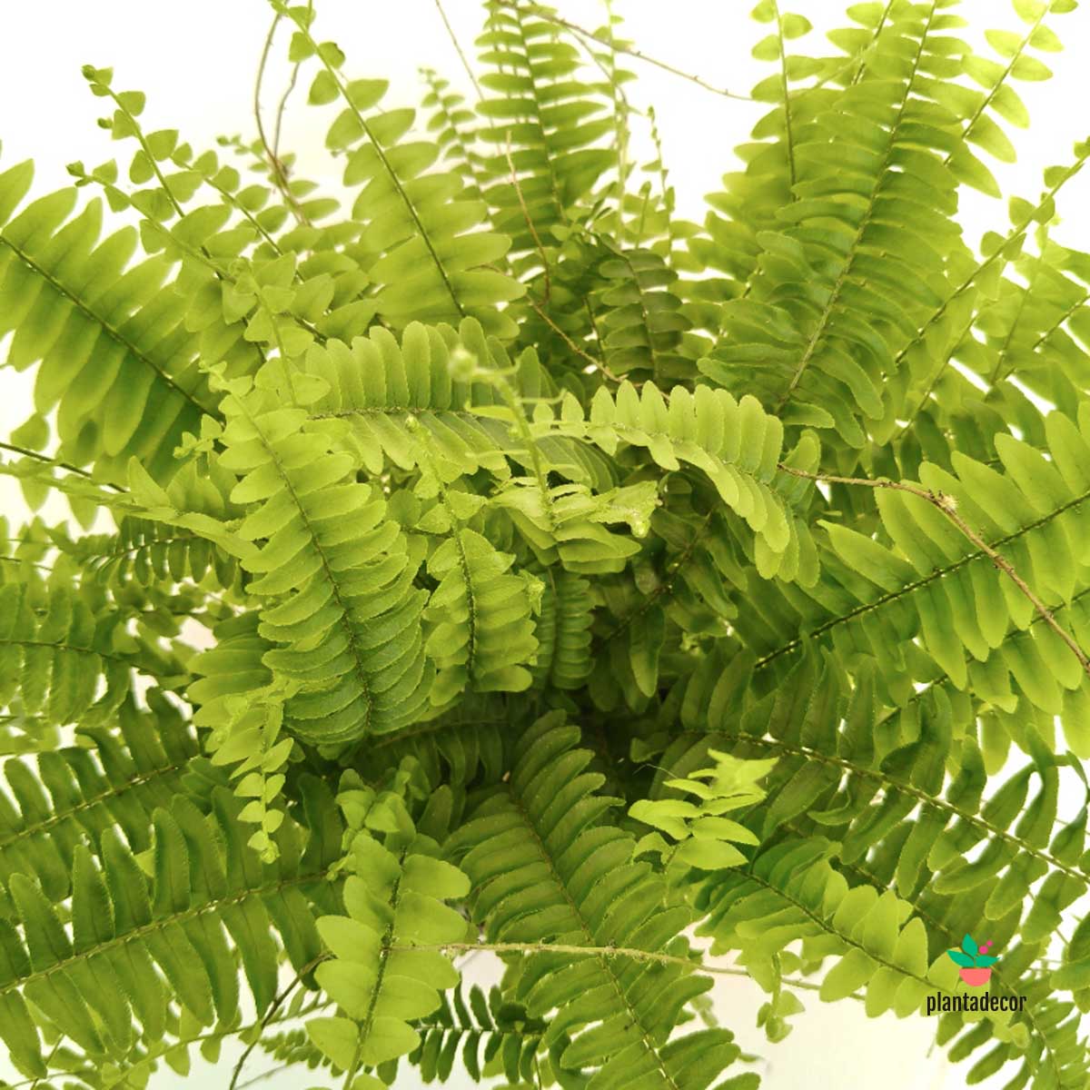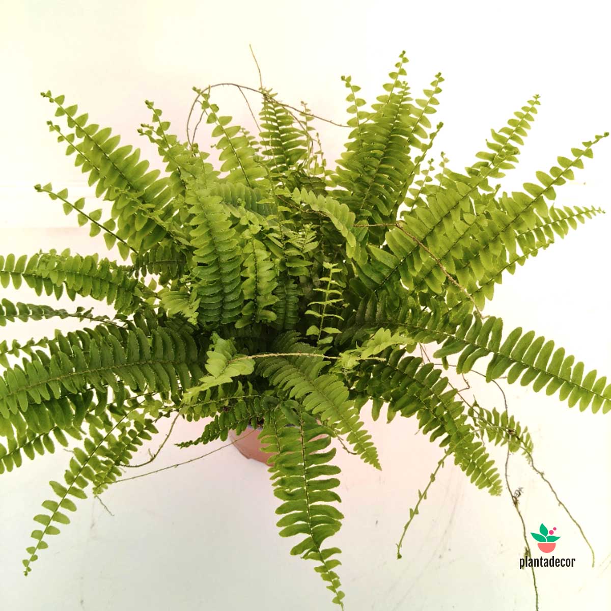 La Nephrolepis exaltata, conocida como helecho de Boston, es una planta perenne de interior muy apreciada por su frondosidad y elegancia natural. Sus frondes arqueadas de un verde vibrante crean un efecto fresco y relajante, ideal para dar vida a salones, oficinas o terrazas protegidas.