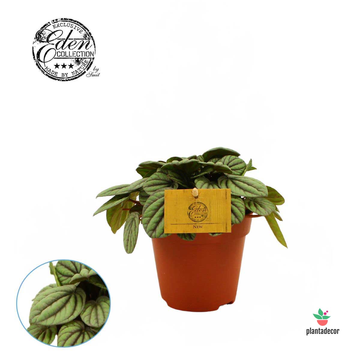 La Peperomia 'Mystique' es una planta compacta y fascinante, apreciada por sus hojas redondeadas con un brillo plateado-azulado y vetas oscuras que le dan un aire misterioso y sofisticado. Su follaje aterciopelado refleja la luz con un efecto sutil, casi metálico, que transforma cualquier rincón en un espacio sereno y elegante.