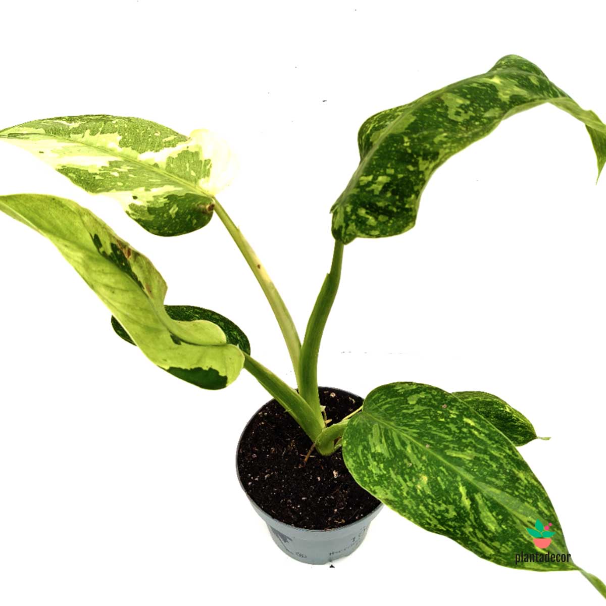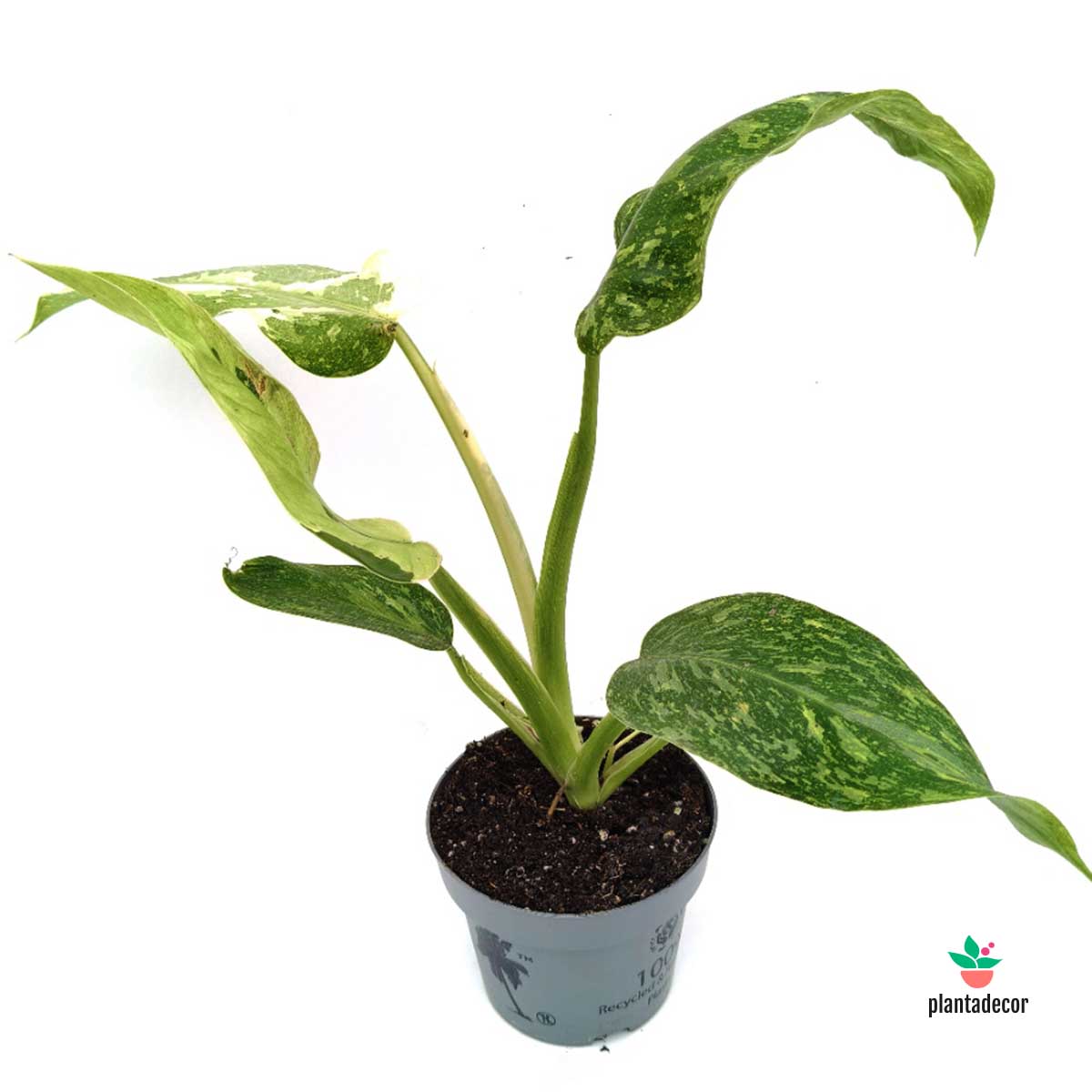 El Philodendron ‘Jose Buono’ es una de las variedades más espectaculares y coleccionables del género, famoso por sus hojas grandes, alargadas y asimétricas que muestran una variegación irregular en tonos crema y blanco sobre un fondo verde intenso. Cada hoja es una obra de arte única, con patrones distintos y sorprendentes.
