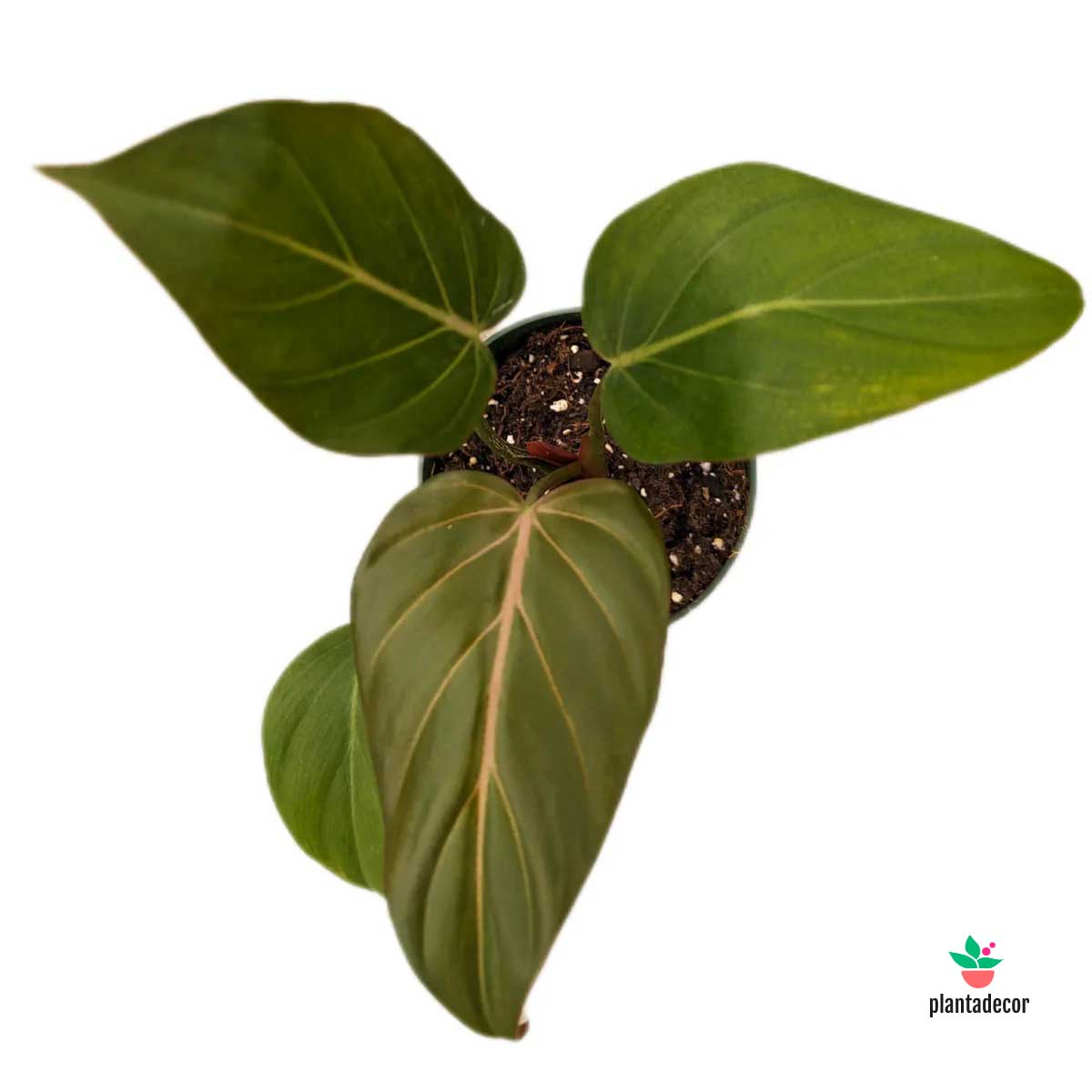 Cada hoja parece una joya tropical: joven, muestra tonos cobrizos o rojizos, que luego maduran hacia un verde profundo y elegante. Es una planta con presencia, perfecta para quienes buscan una pieza exótica y refinada para su colección de interior.