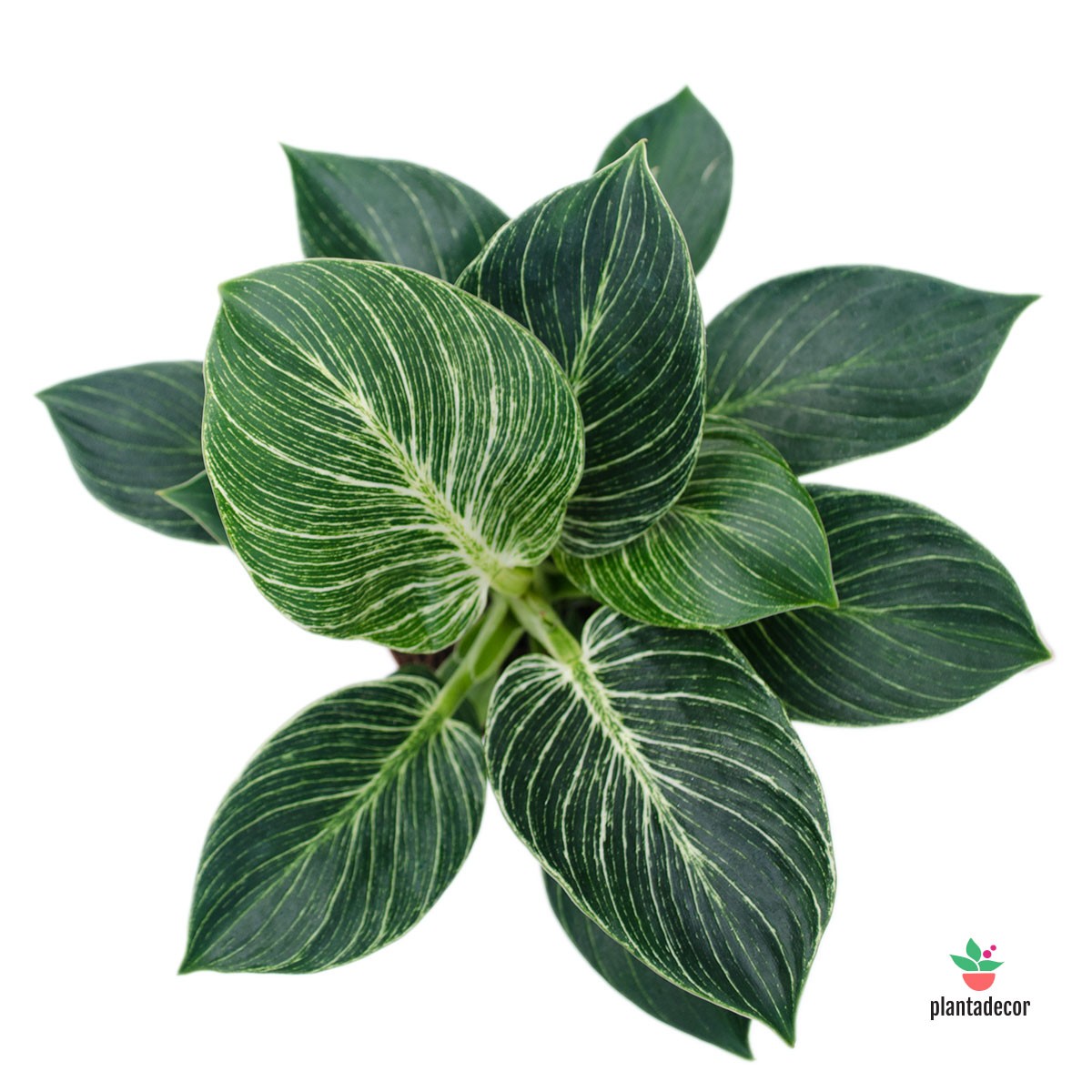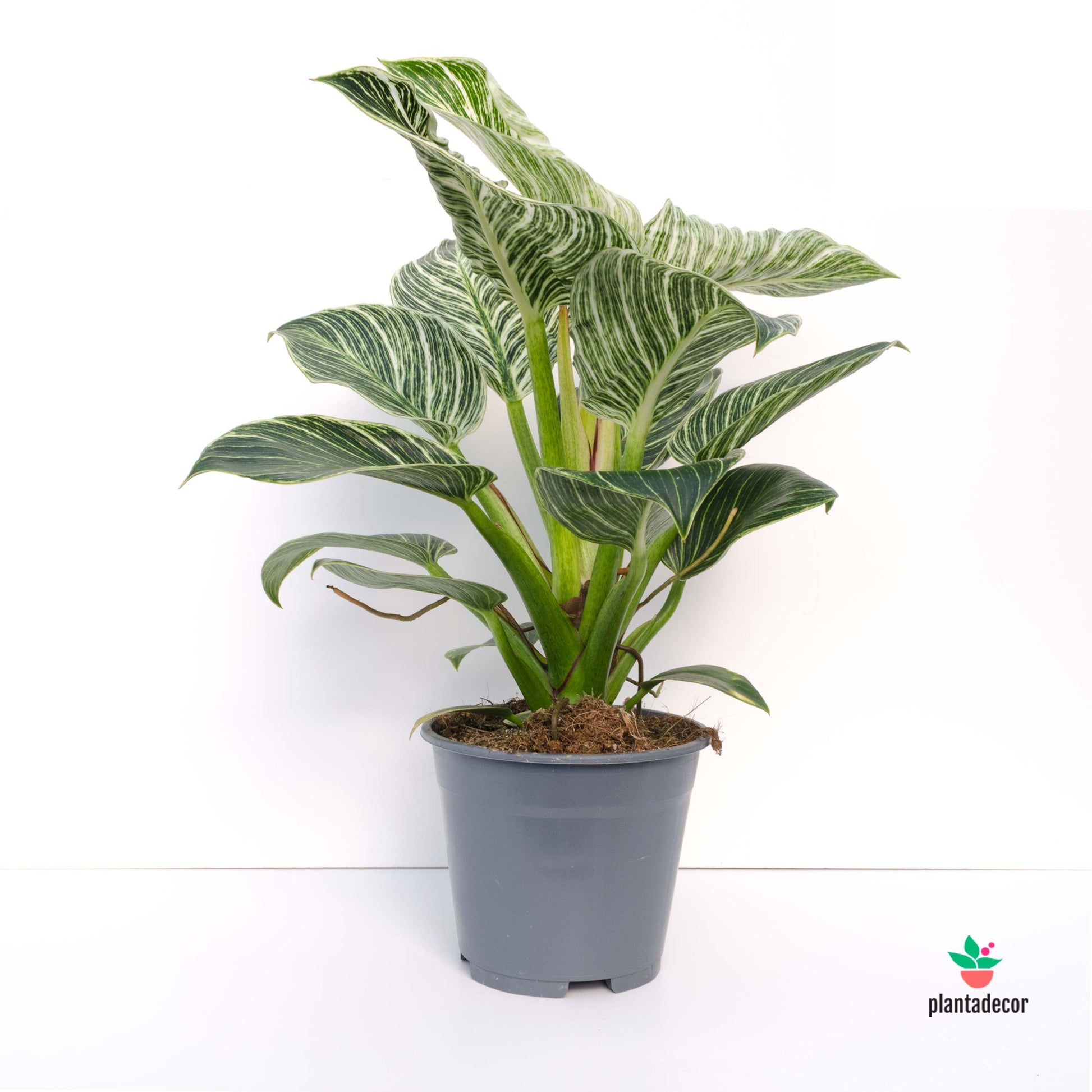 El Philodendron 'White Measure' es una variedad exótica y muy apreciada por coleccionistas, famosa por su variegación blanca nítida y bien definida sobre un fondo verde intenso. Sus hojas grandes, brillantes y ligeramente acorazonadas le dan un porte sofisticado, convirtiéndolo en una pieza protagonista en interiores luminosos.