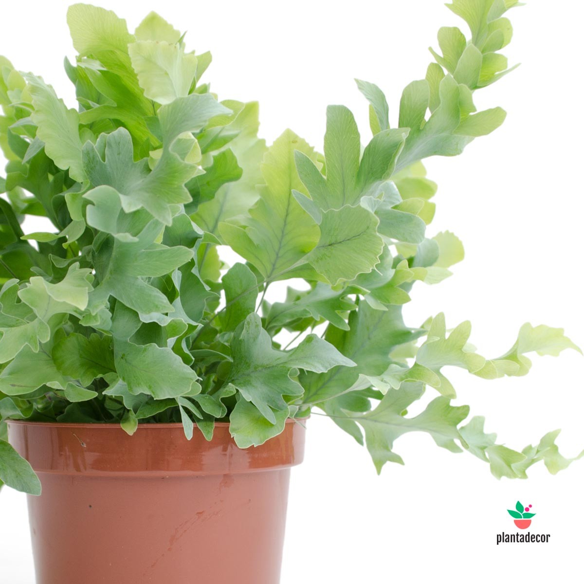 El Phlebodium aureum 'Davana', conocido como helecho azul o helecho pata de conejo, es una variedad espectacular que destaca por sus hojas onduladas de tono verde azulado, con un acabado mate y aterciopelado. Su follaje único aporta frescura, movimiento y una elegancia natural que encaja a la perfección en interiores luminosos o zonas húmedas del hogar.