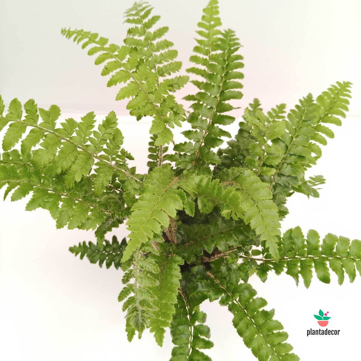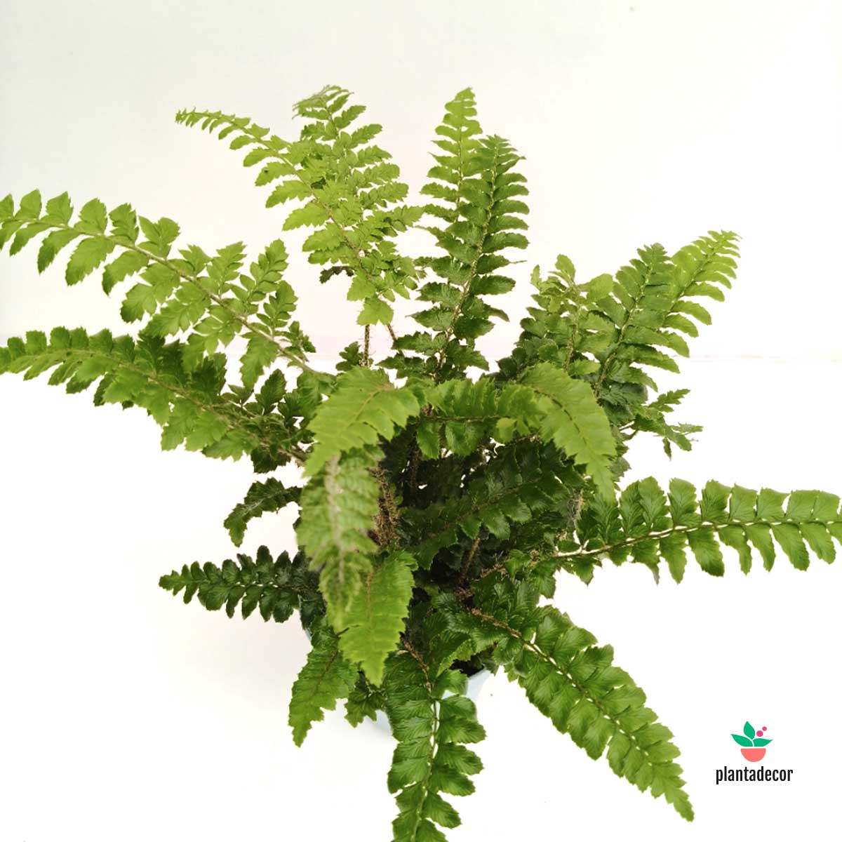 La Polystichum polyblepharum, conocida como helecho japonés brillante, es una especie perenne de porte arqueado y frondes firmes, con un brillo natural que realza su textura. Sus hojas de un verde profundo transmiten serenidad y frescura, creando un ambiente natural y relajante.
