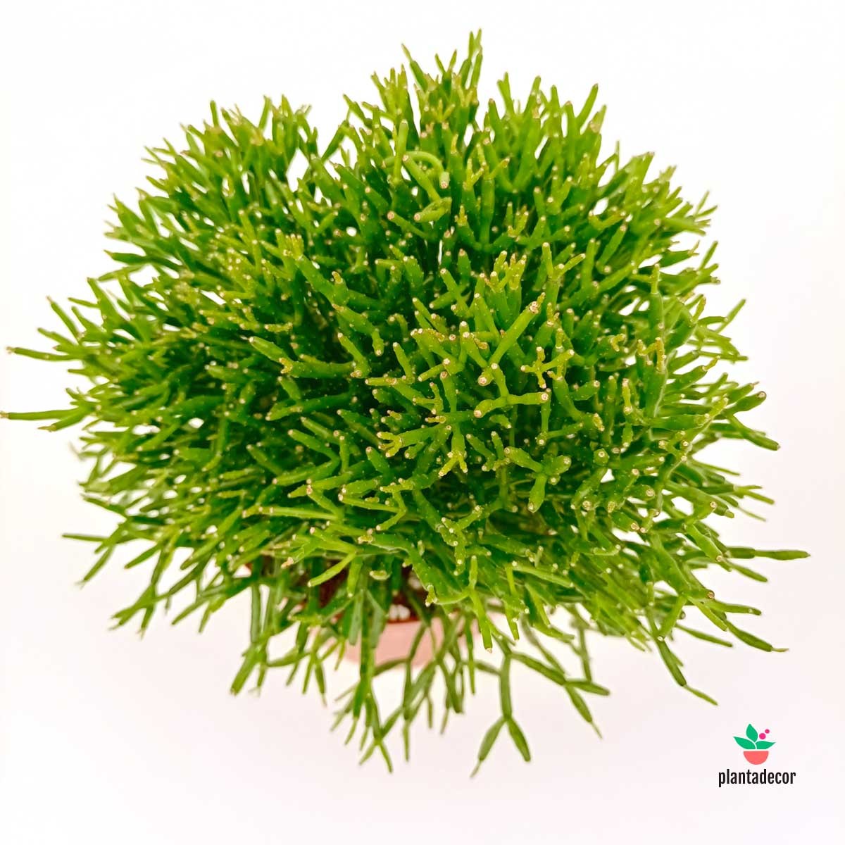 El Rhipsalis capilliformis es un cactus epífito elegante y delicado, conocido por sus tallos finos, cilíndricos y colgantes que crean una preciosa caída verde estilo “cabellera vegetal”. Su textura sutil y su porte ligero aportan una sensación de calma, frescura y naturaleza auténtica en interiores luminosos.