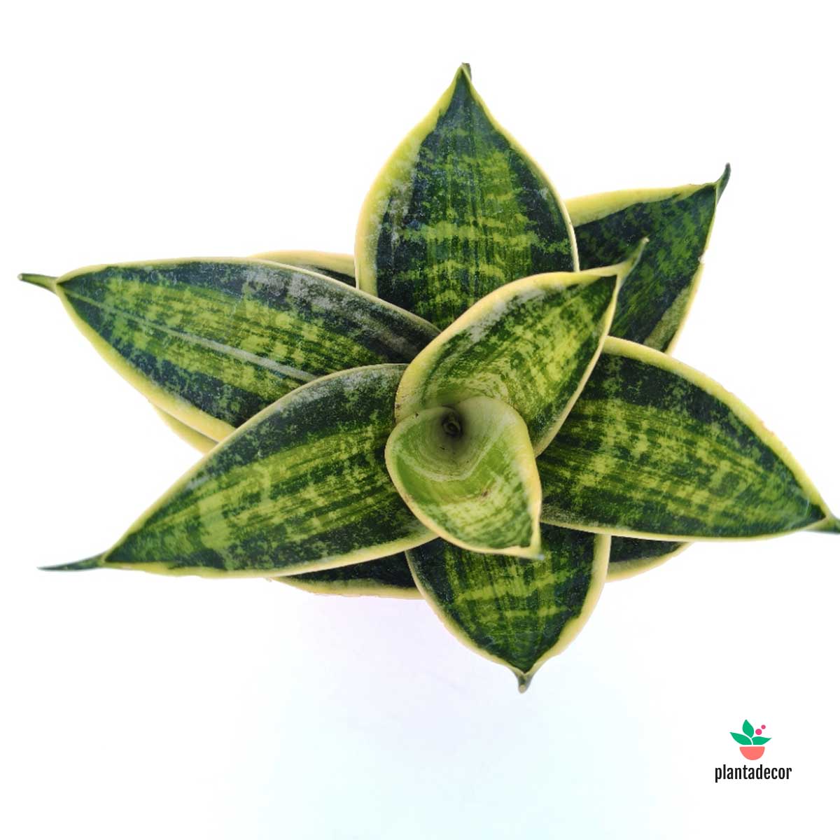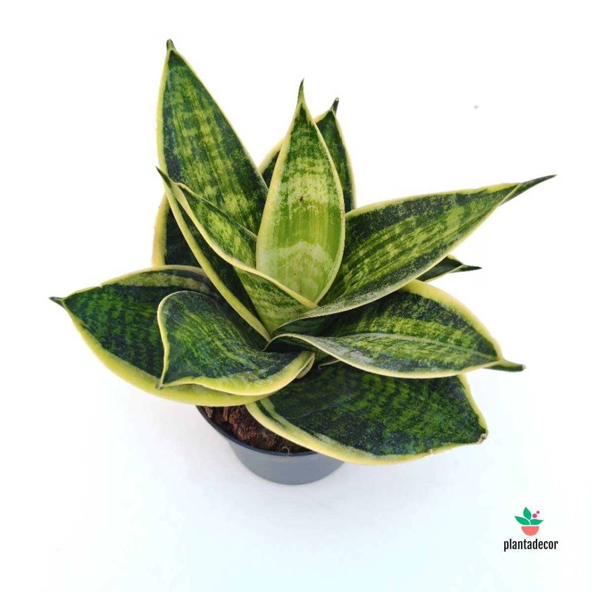 La Sansevieria hahnii 'Superstar' es una variedad enana y altamente decorativa de sansevieria, famosa por sus hojas cortas y anchas en roseta, con un centro verde intenso y bordes dorados brillantes que le dan un aspecto luminoso y estructurado.