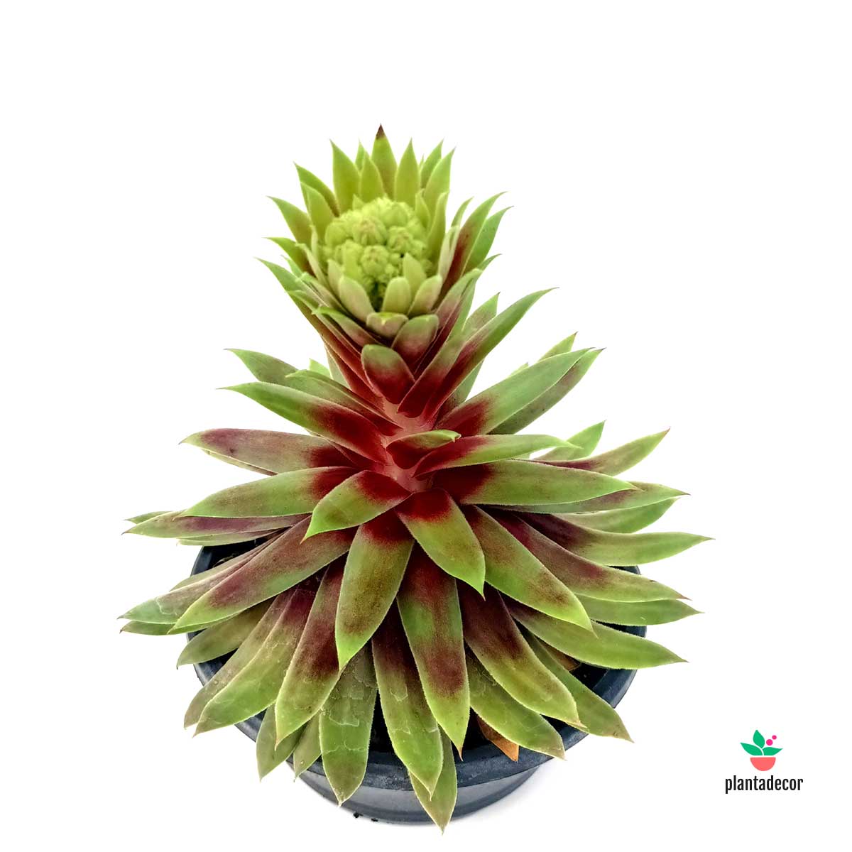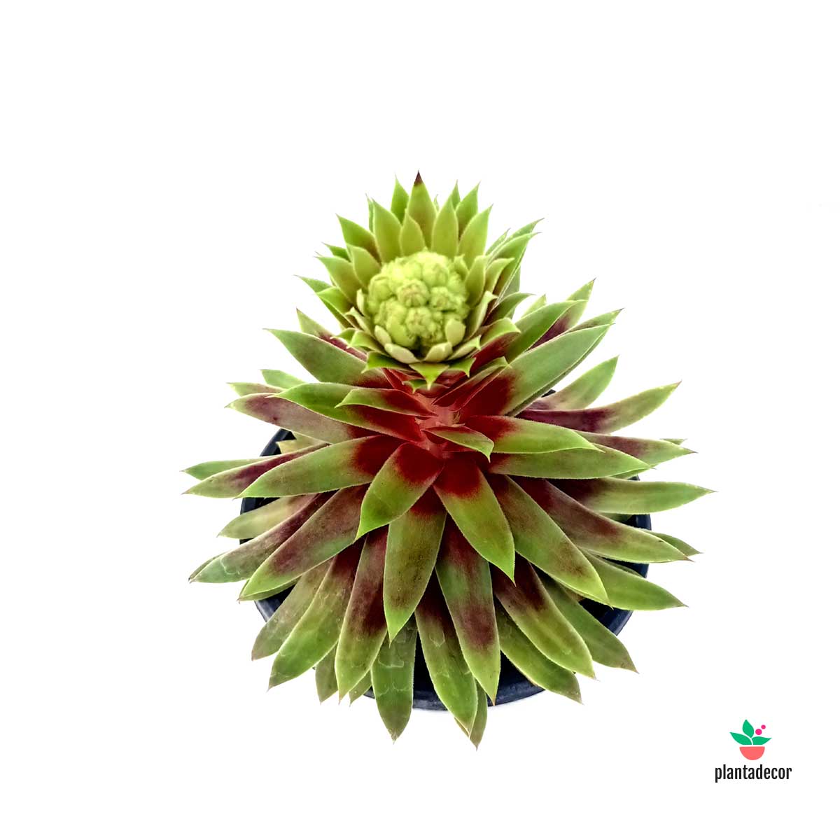 El Sempervivum 'Gold Mine' es una variedad excepcional de siempreviva que destaca por sus rosetas perfectamente formadas, con hojas carnosas en tonos verde-lima que adquieren reflejos dorados bajo el sol. Su forma compacta y su color luminoso la convierten en una planta perfecta para borduras, macetas decorativas o rocallas soleadas, aportando un toque de elegancia y frescura.