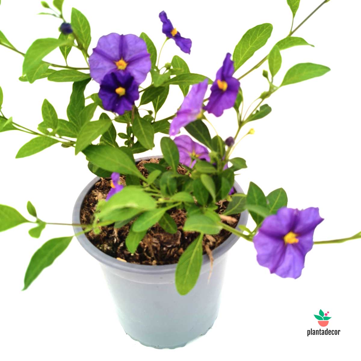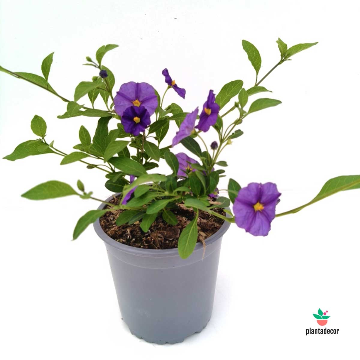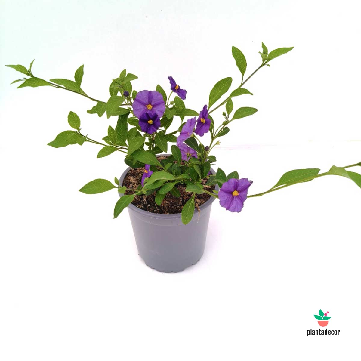 El Solanum rantonnetii es un arbusto alegre y florífero que enamora por sus flores violetas intensas con centro amarillo, que aparecen en abundancia desde primavera hasta otoño. Su porte ligero y ramificado, junto a su follaje verde brillante, crea un efecto fresco y lleno de movimiento.